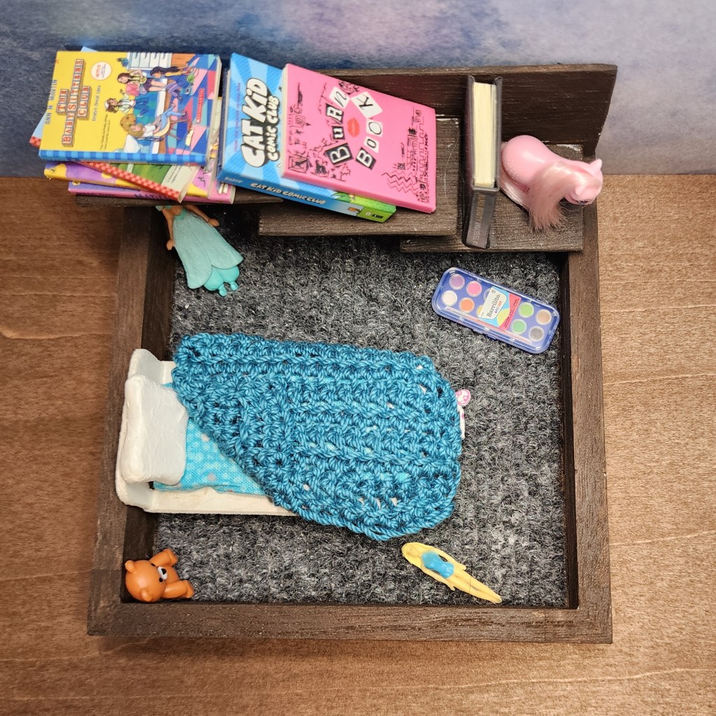 A rumbled blanket thrown to the side as its owner wakes up and rushes to get ready for school. A favorite doll laying under the bed, forgotten after last night’s play. Their mother asked them to clean up yesterday, but cleaning is such a bore. Why clean when there is so much fun in the pages of a book and the worlds you can build with your toys?